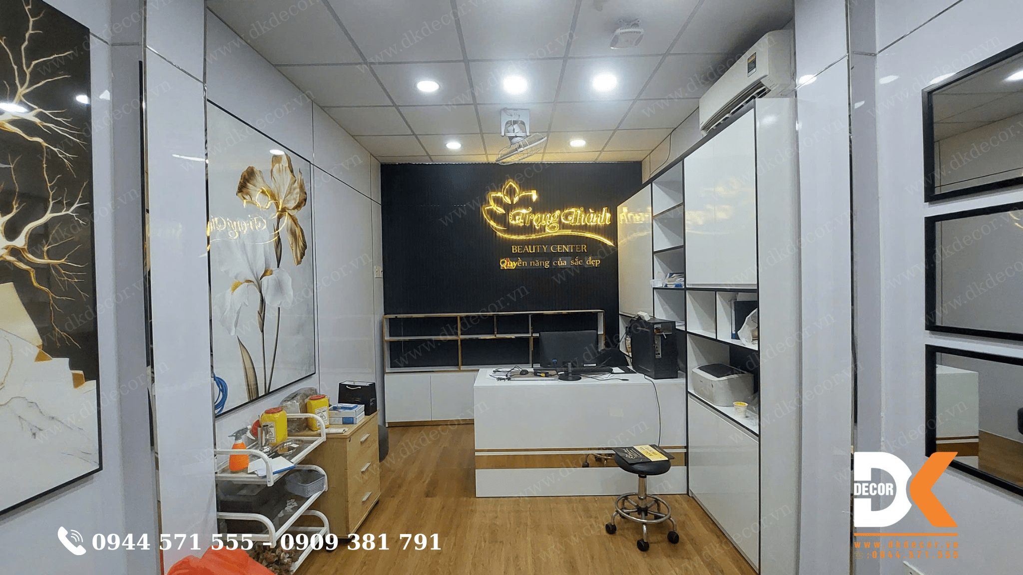 Với đội ngũ thi công chuyên nghiệp, giàu kinh nghiệm trong lĩnh vực làm đẹp, DK Decor cam kết đảm bảo tiến độ, thi công đúng bản vẽ, chuẩn thẩm mỹ và tối ưu công năng sử dụng. Việc đồng bộ từ thiết kế đến thi công không chỉ giúp rút ngắn thời gian triển khai mà còn kiểm soát chi phí hiệu quả và mang lại sự hài lòng tuyệt đối cho khách hàng.